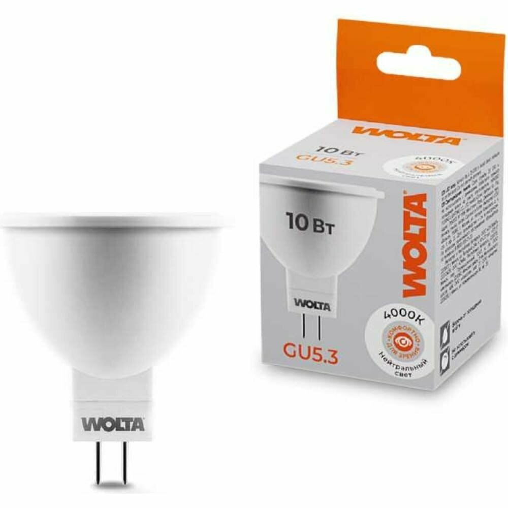 (10 шт.) Светодиодная лампочка Wolta лампа св/д MR16 GU5.3 220V 10W(825lm) 4000K 4K матов 52X50 25SMR16-220-10GU5.3 . Цоколь GU5.3 1 773 ₽