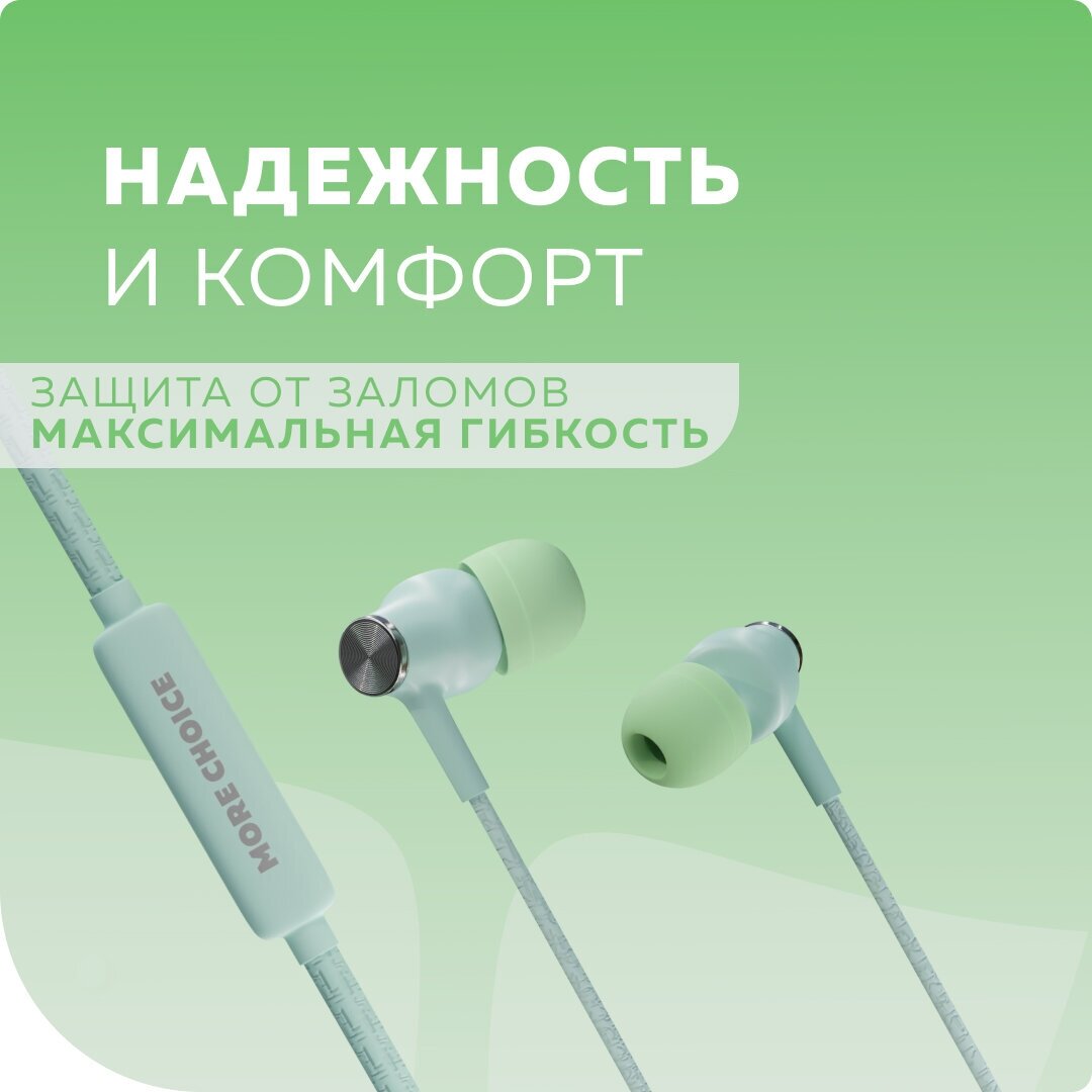 10 цен на More choice Наушники More Choice G20, микрофон, вакуумные, 95 дБ, 32 Ом, 3.5 мм, 1.1 м, зеленые