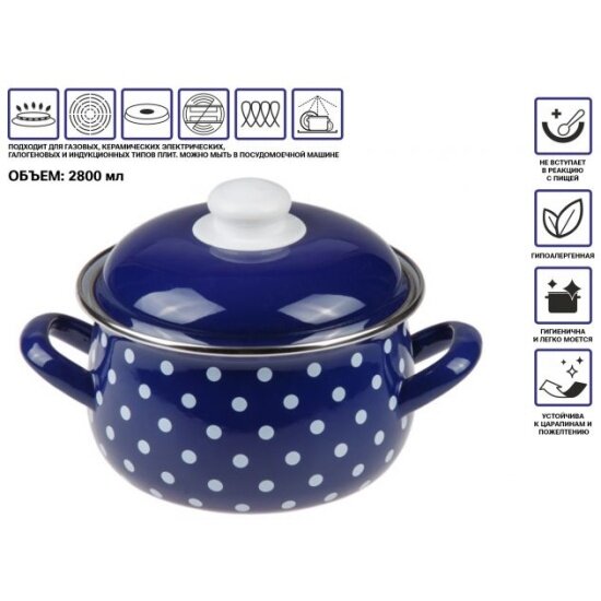 Perfecto Linea Кастрюля стальная эмалированная, 2.8 л, серия Горошек, (подходит для всех типов плит, включая индукцию) (50-600928) информация: