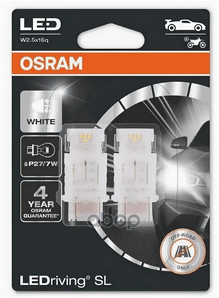 Ledriving Sl (3Поколение) 2,0W/12V P27/7W W2.5x16q Bli2 Белый 6000K 2Шт Osram арт. 3157DWP02B
