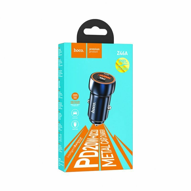 Автомобильное зарядное устройство (АЗУ) Hoco Z46A QC 3.0 (USB+Type-C) 3 А, черный