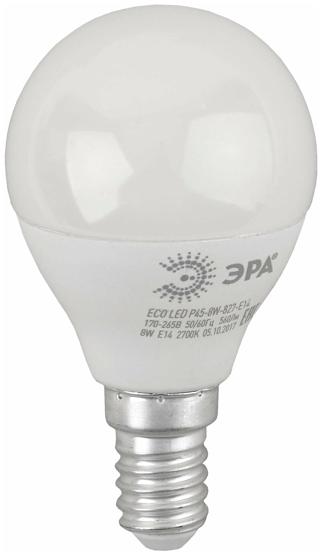 ECO LED P45-8W-827-E14 (диод, шар, 8Вт, тепл, E14), ЭРА Б0030022 (1 шт.)