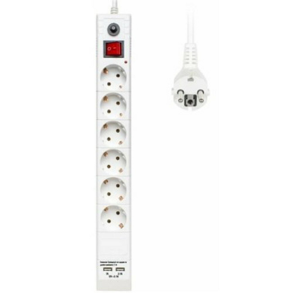 Сетевой фильтр Buro Bu-sp3_usb_2a-w 3м (6 розеток) белый (коробка) .