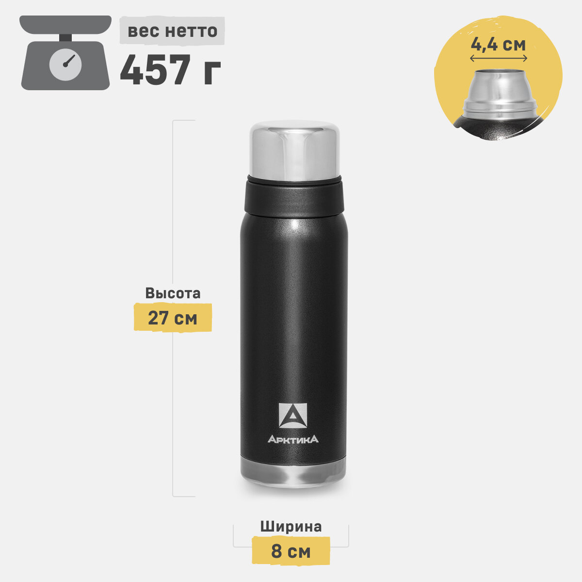 Классический термос чаша Арктика 106 C, 0.9 л, черный