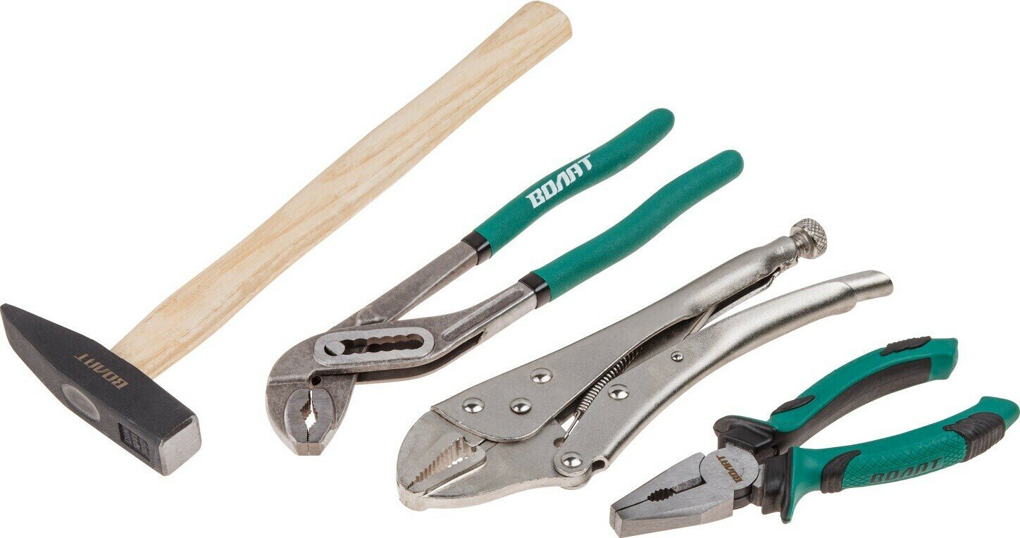 | Шарнирно-губцевый инструмент подробно | плоскогубцы 160 мм; клещи переставные 250 мм; зажим с фиксатором 250 мм; трещотка 1/4"; переходник (держатель для бит) 1/4"х1/4"(hex); удлинитель 1/4" 75 мм; кардан 1/4"; вороток-отвертка 1/4" 150 мм; трещотка 1/2"; удлинитель 1/2" 125 мм; кардан 1/2" |