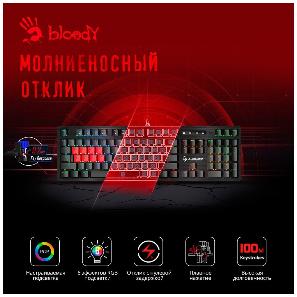 Клавиатура A4Tech Bloody B820R (Blue Switches) Black
