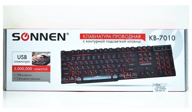 Отзывы на Клавиатура проводная SONNEN KB-7010, USB, 104 клавиши, LED-подсветка, черная, 512653 В комплекте: 1шт.