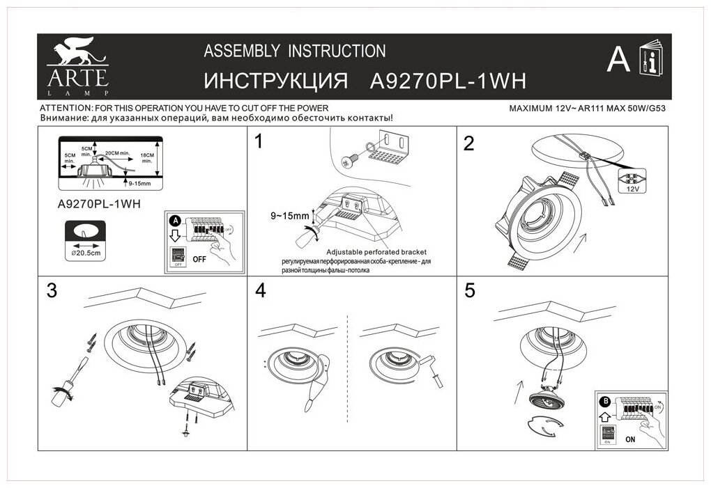 | Комплектация | Встраиваемые светильники Arte Lamp A9270PL-1WH |