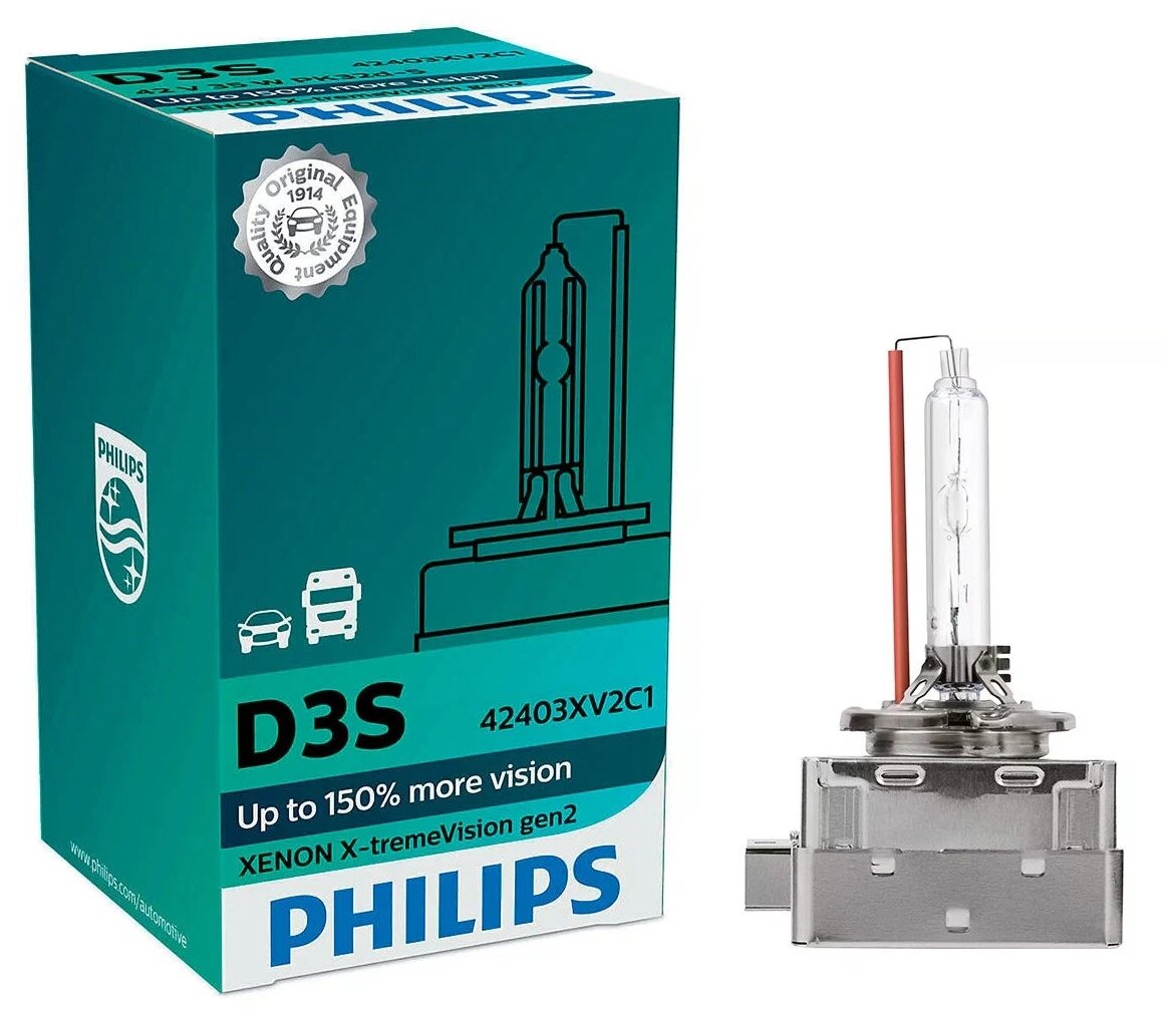 Лампа автомобильная PHILIPS X-tremeVision D3S 42V 35W +150 GEN2 PK32d-5 1 шт. PHILIPS-42403XV2C1