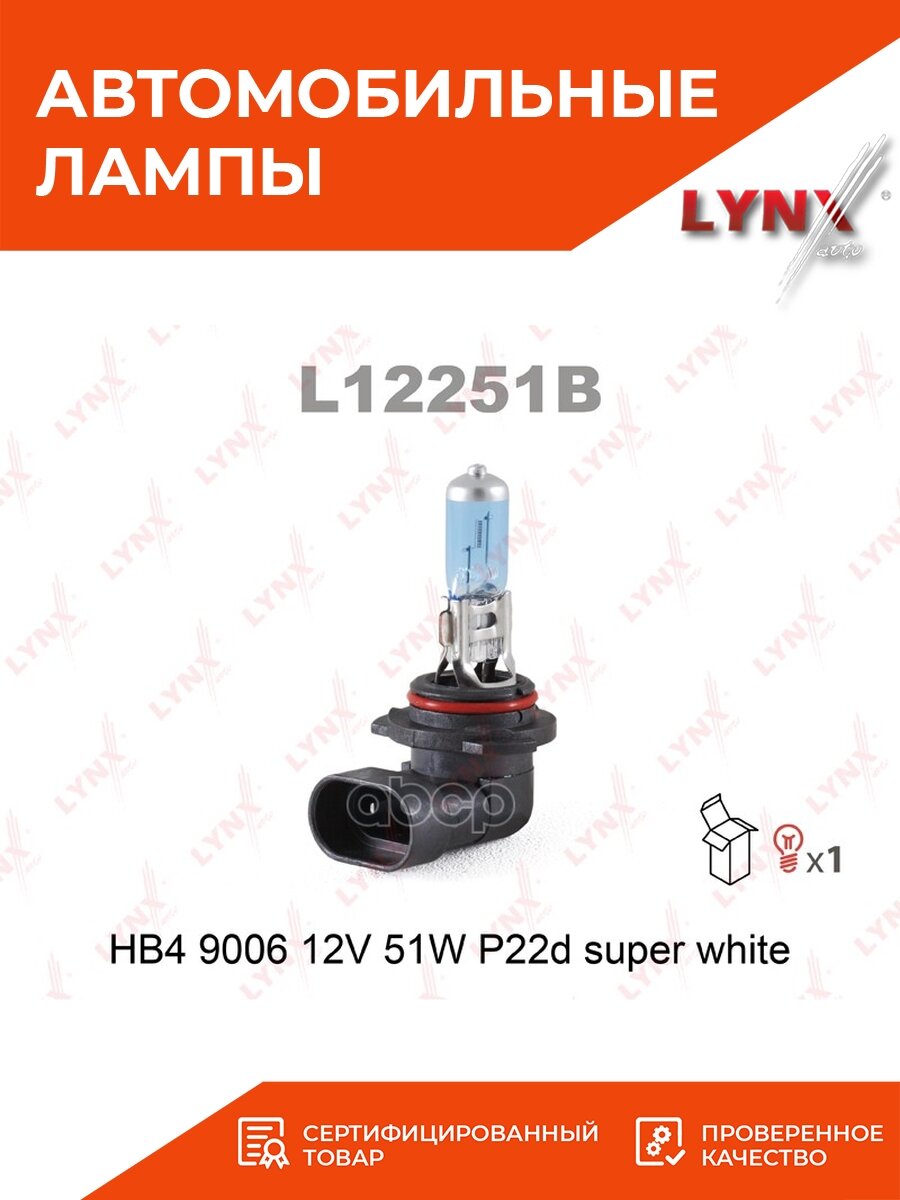 Лампа 12v Hb4/9006 51w P22d Lynxauto Super White 1 Шт. Картон L12251b LYNXauto арт. L12251B