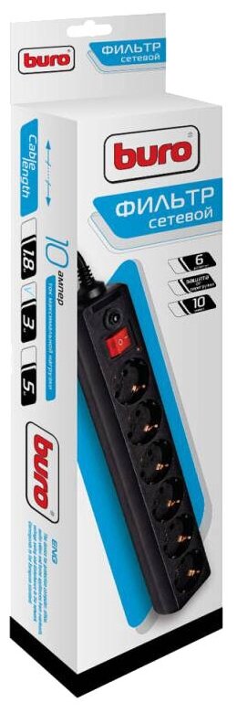 Сетевой фильтр Buro 600SH-3-B 3м (6 розеток) черный . информация: