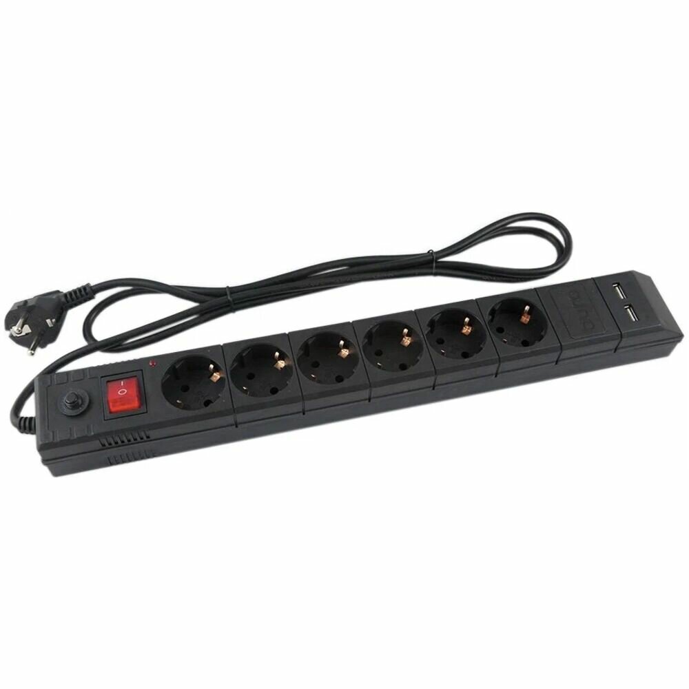 Сетевой фильтр Buro BU-SP1.8_USB_2A-B, 6 розеток, 1.8 м, черный 1 140 ₽