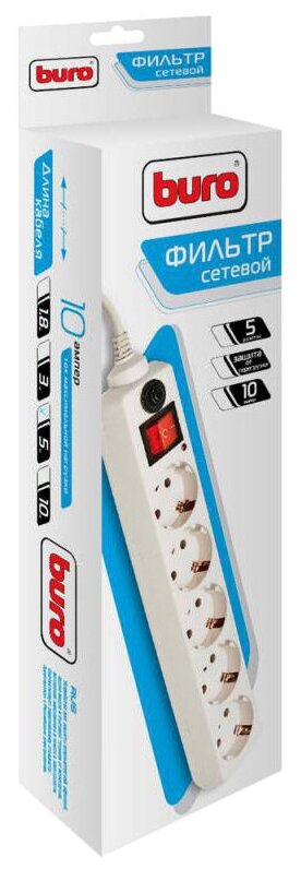 Отзывы на BURO Сетевой фильтр, 5 розеток, 5 метров, (500SH-5-W), белый (коробка) {992295}