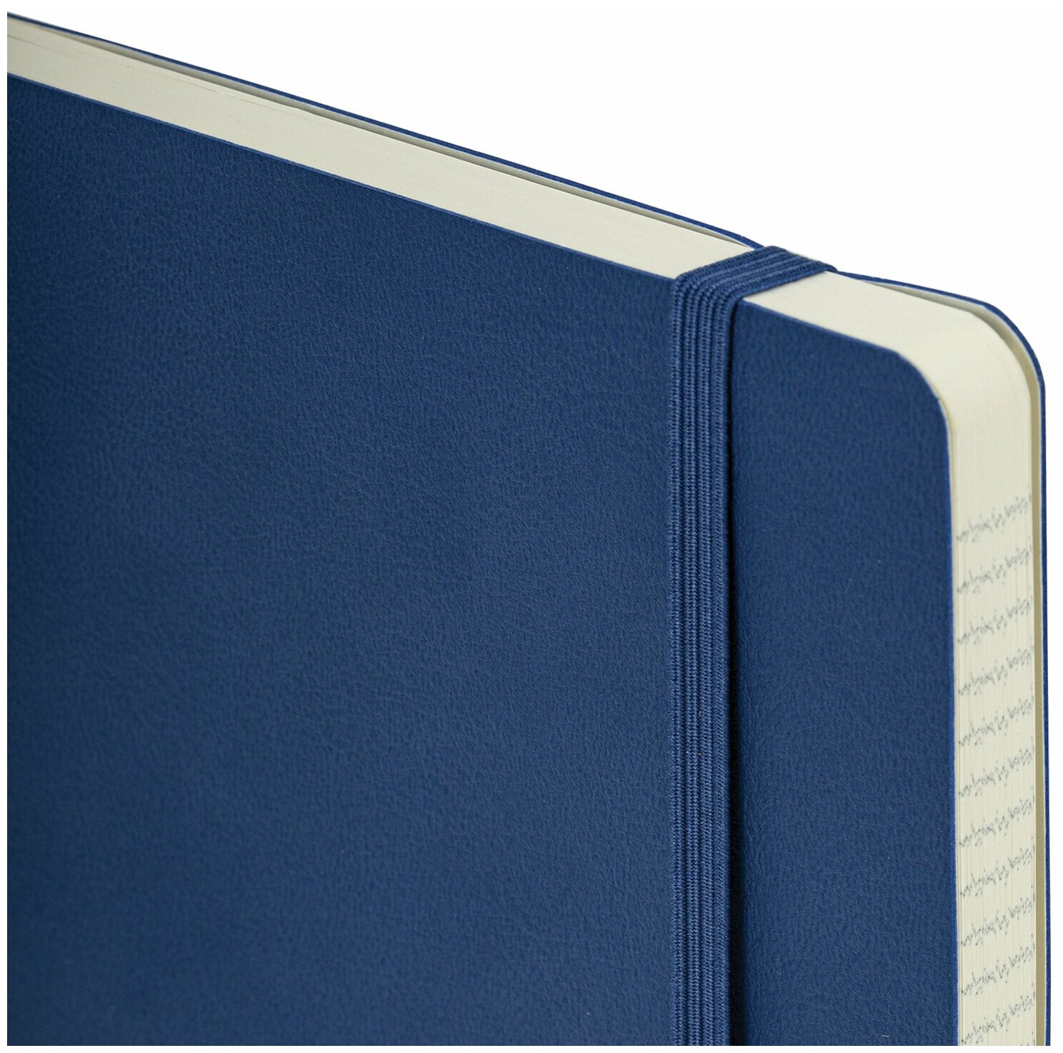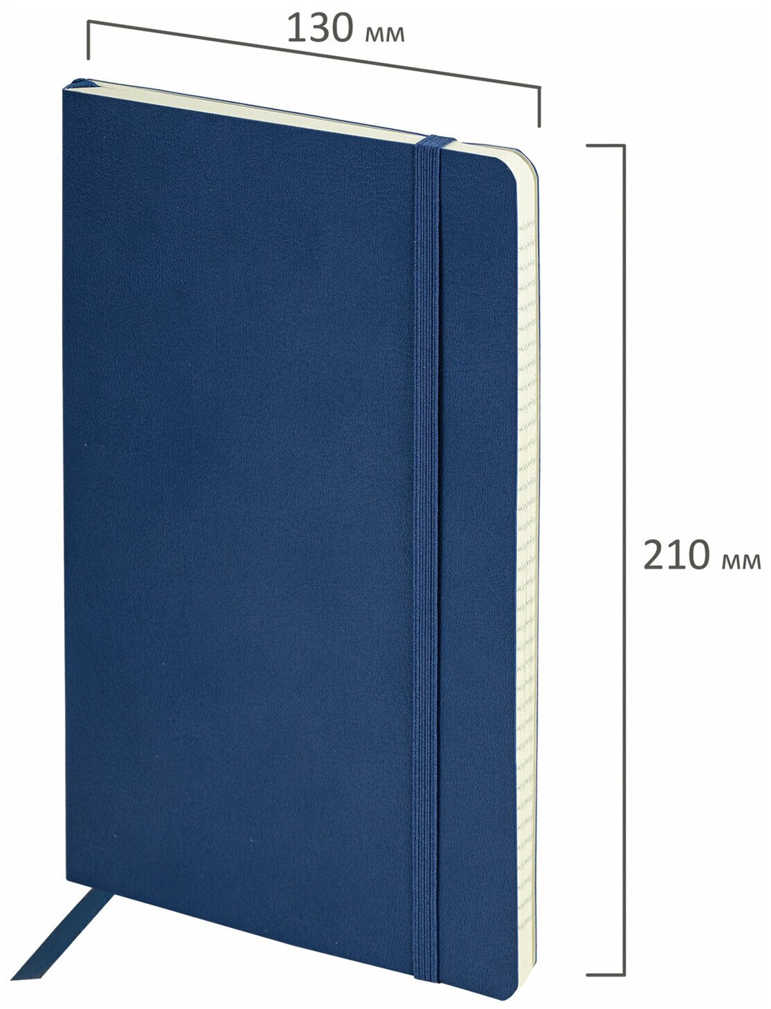 Бизнес-блокнот / записная книжка мужской / женский А5 (148х218 мм), Brauberg Note, под кожу софт-тач, с резинкой, 80 листов, клетка, синий