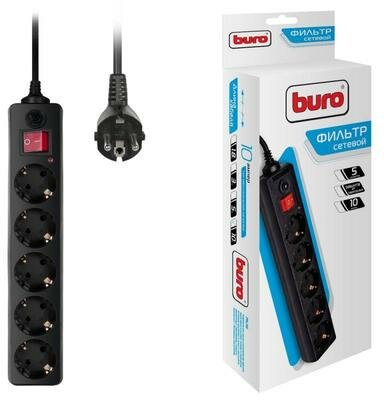 Сетевой фильтр Buro (500SH-10-B) 5 розеток, 10м, черный . информация: