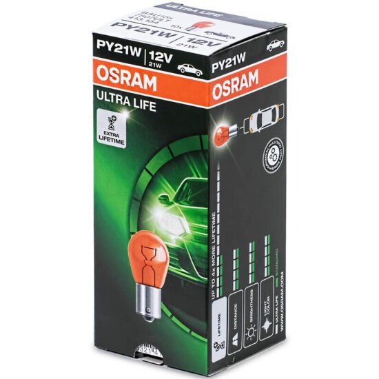 Отзывы на Лампа автомобильная вспомогательная Osram ULTRA LIFE, PY21W, 12V, цоколь BAU15s, 1 шт