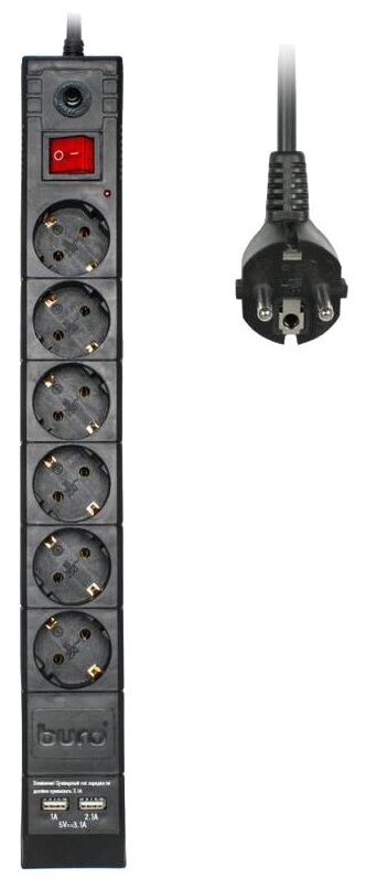 Сетевой фильтр BURO BU-SP3_USB_2A-B черный 6 розеток 3 м