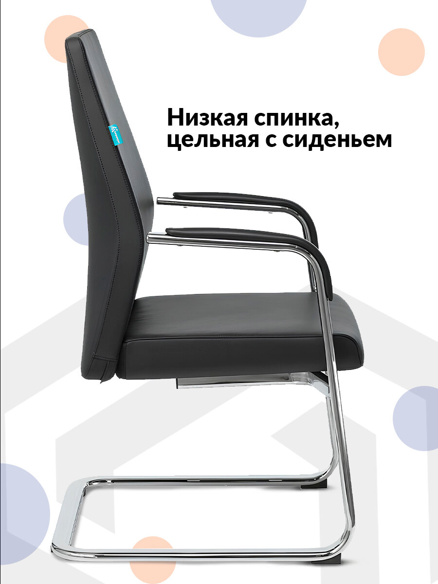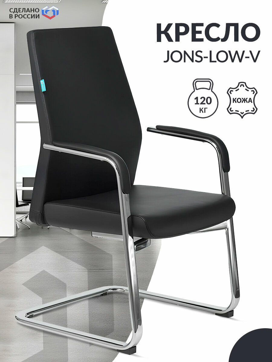 Кресло офисное JONS-LOW-V черный кожа низк.спин. полозья металл хром / Кресло для посетителей, ресепшена, дома 39 769 ₽