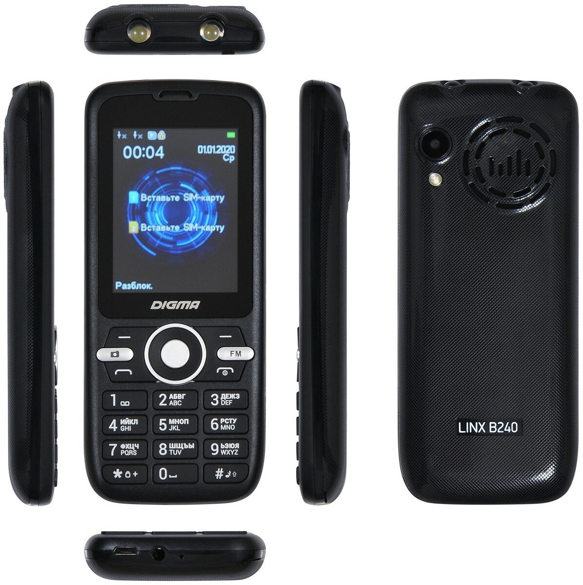 Мобильный телефон, телефон кнопочный, телефон кнопочный мобильный, телефон Digma Linx B240 32Mb черный