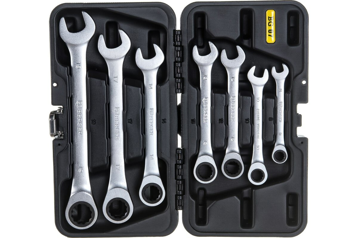Набор ключей комбинированных трещоточных 7 предметов в кейсе, 8-19 мм Berger BG-7SCRW
