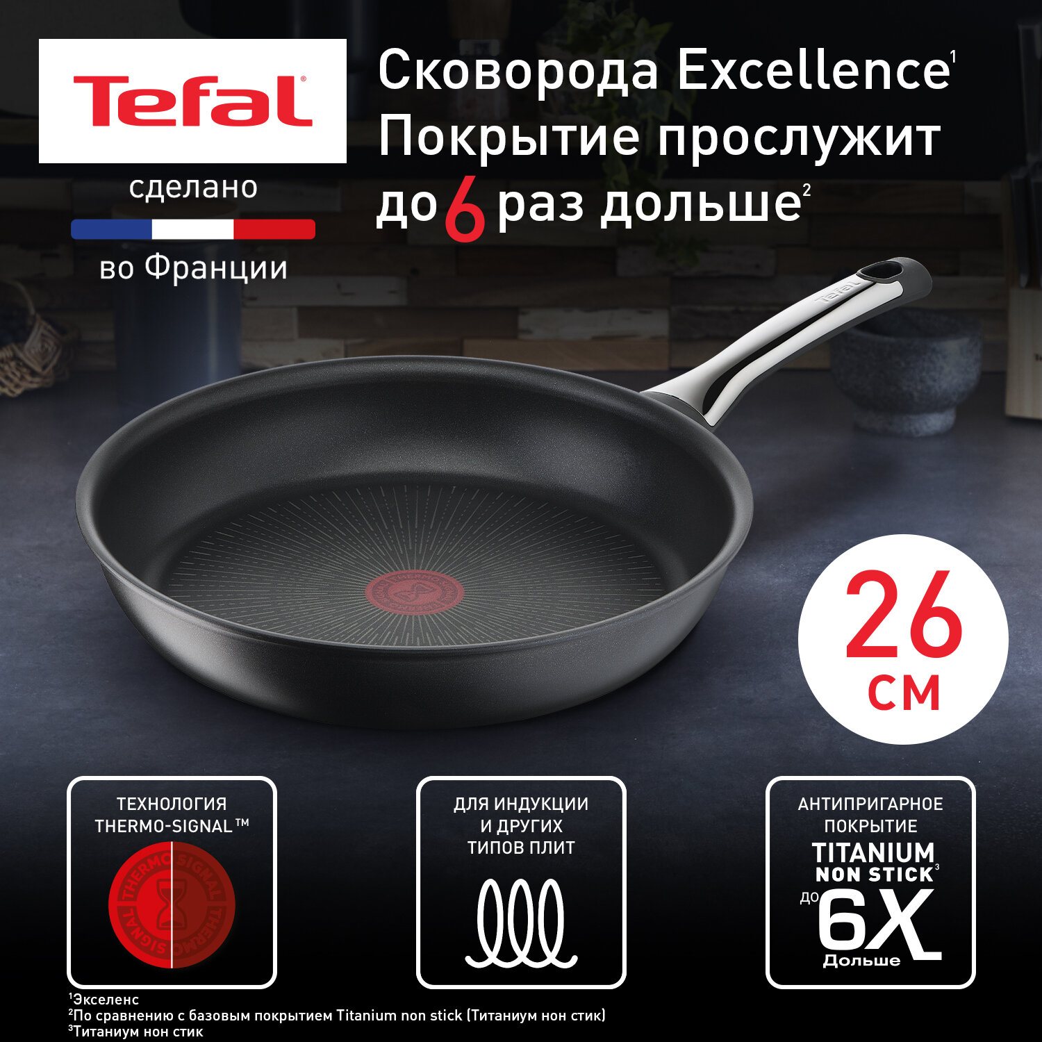 10 цен на Сковорода Tefal Excellence G2690572, 26 см, с индикатором температуры, глубокая с антипригарным покрытием, подходит для индукции, сделано во Франции