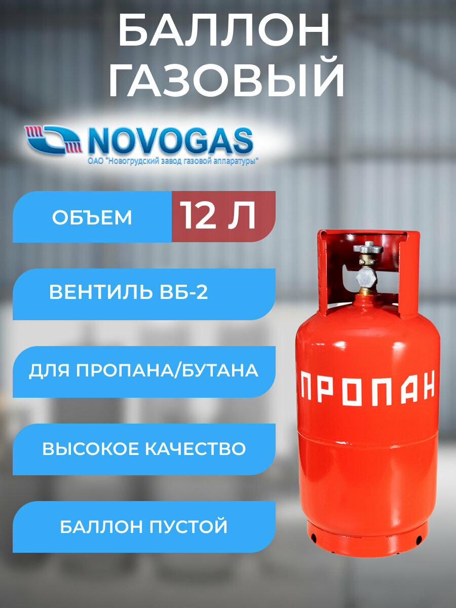Баллон газовый 12л с вентилем ВБ-2 NOVOGAS