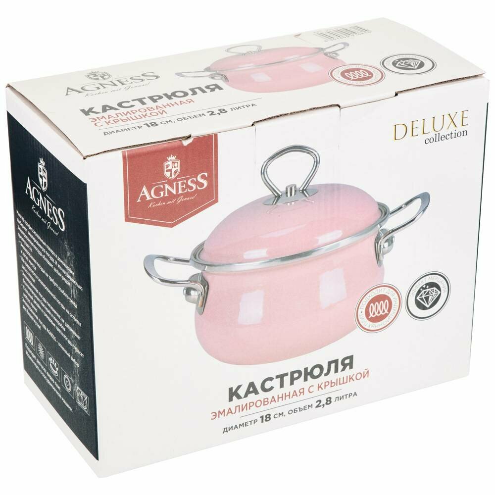 Кастрюля Agness Серия Deluxe эмалированная с крышкой, 18*11,5 см, 2,8 л, кофейный (901-081)