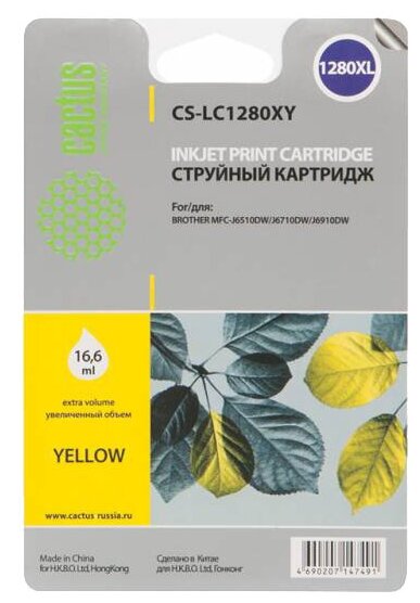 Отзывы на Cactus Расходные материалы LC-1280XY Картридж струйный CS-LC1280XY желтый для Brother MFC-J6510 6910DW 16,6ml
