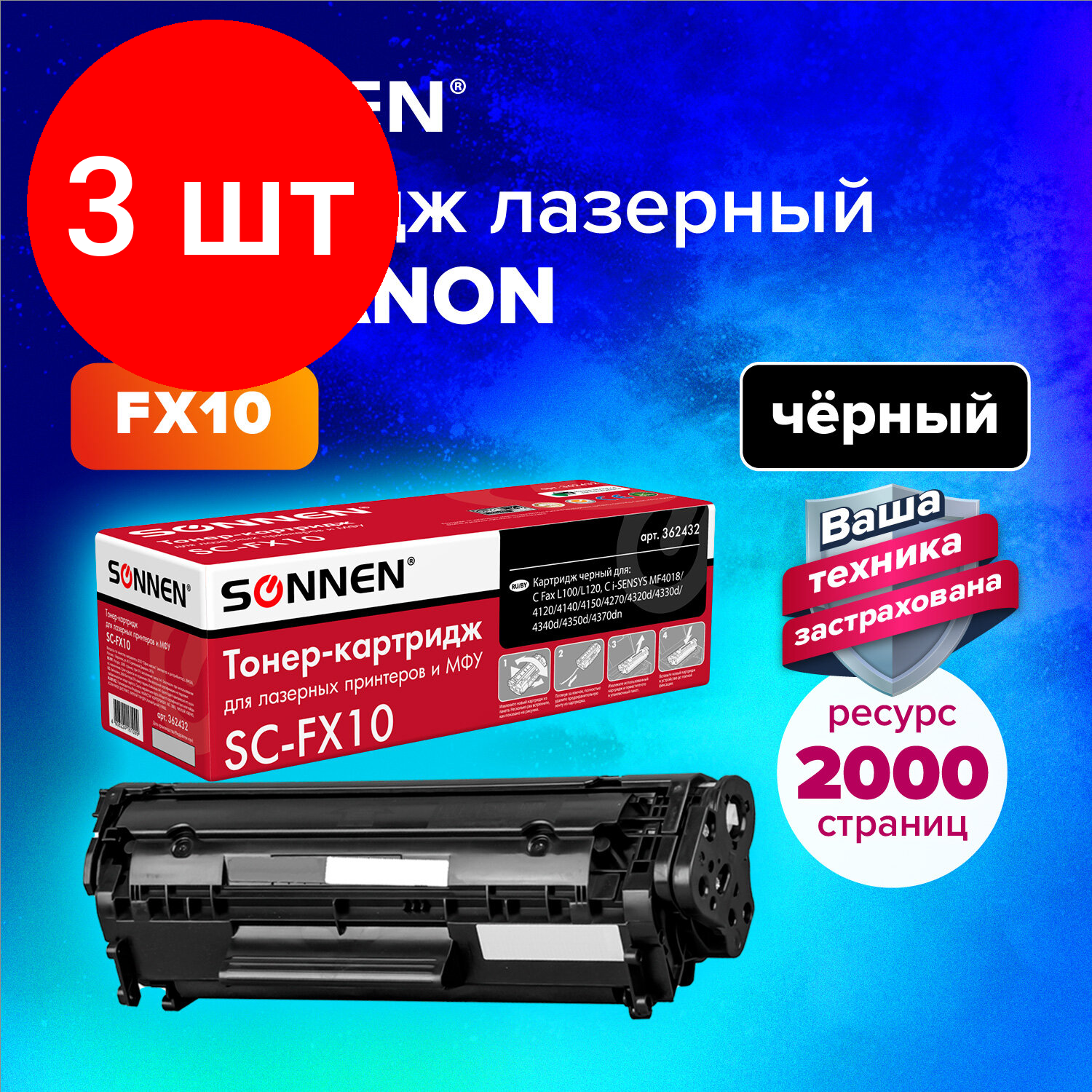 Комплект 3 шт, Картридж лазерный SONNEN (SC-FX-10) для CANON i-SENSYS MF4018/4120/40/50/4270, высшее качество, ресурс 2000 стр., 362432 информация: