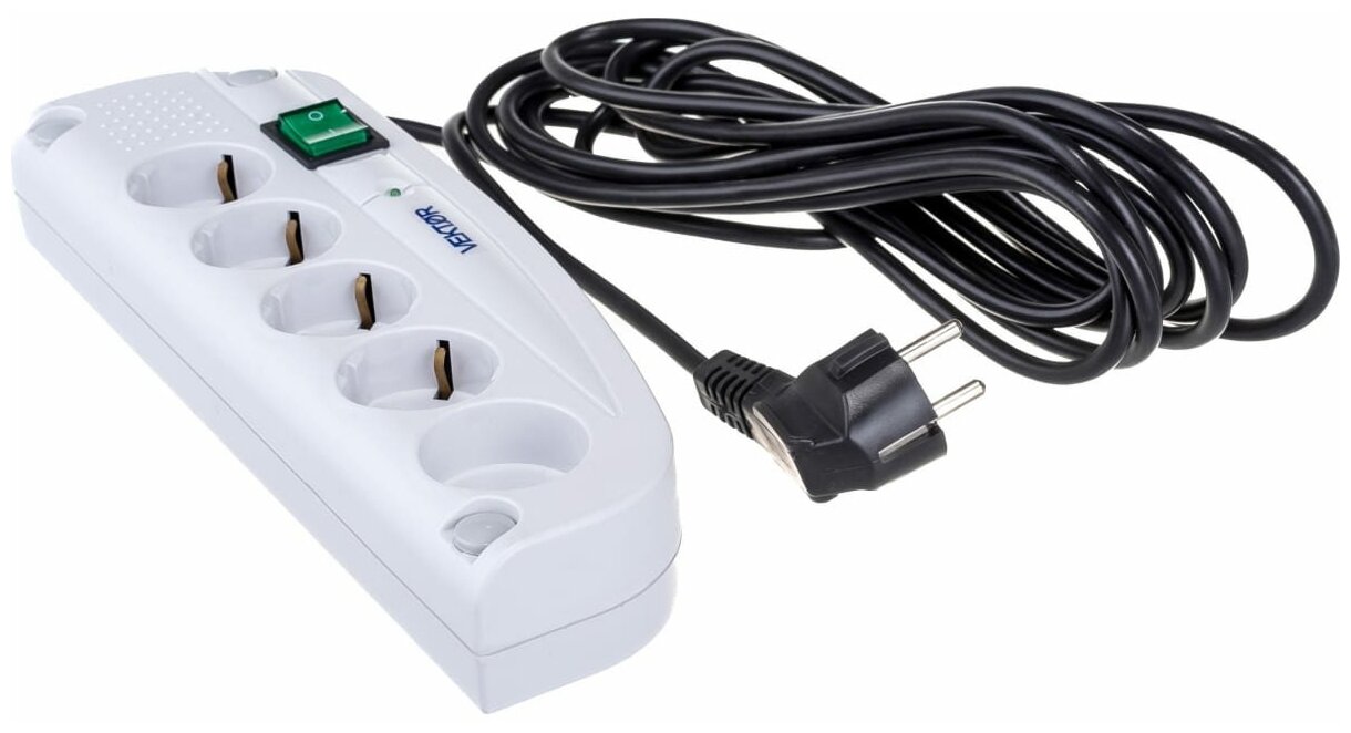 10 цен на Сетевой фильтр Vektor Z, 3,5 кВт, 16А, с заземлением, 5 розеток, 5 м, белый