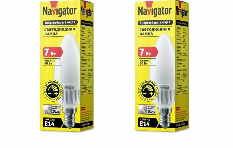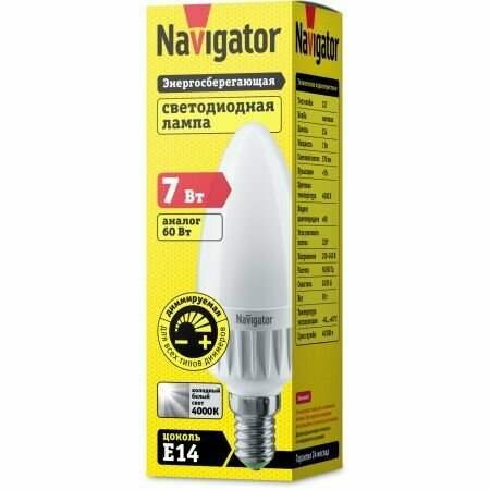 Светодиодная диммируемая лампа Navigator 61380 NLL-C37-7-230-4K-E14-FR-DIMM (2шт) информация: