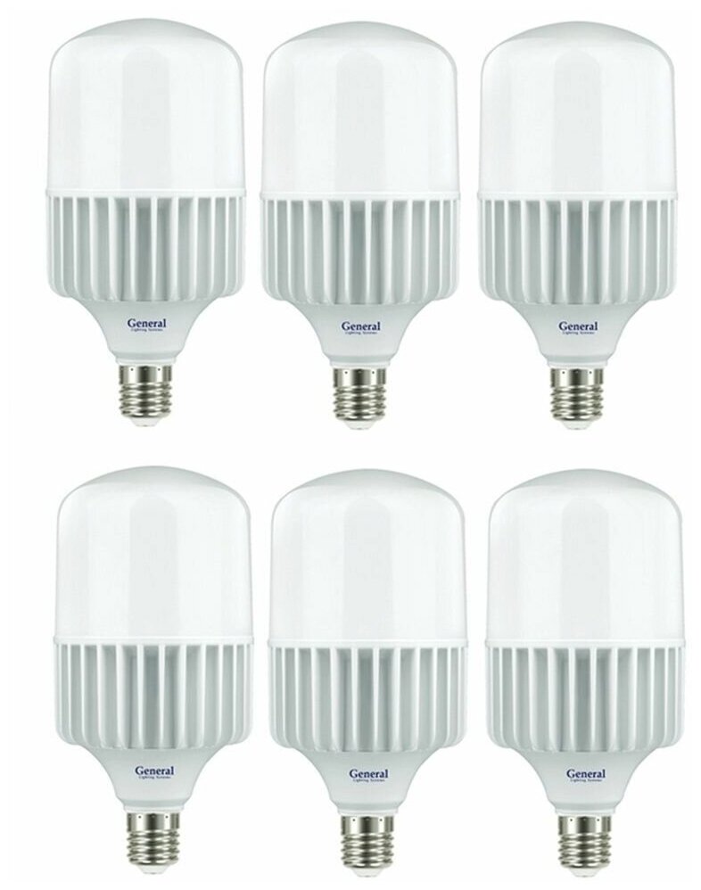 Лампочка светодиодная, General, Комплект из 6 шт., 50 Вт, Цоколь E27, 6500К, Форма лампы Бочонок, HPL