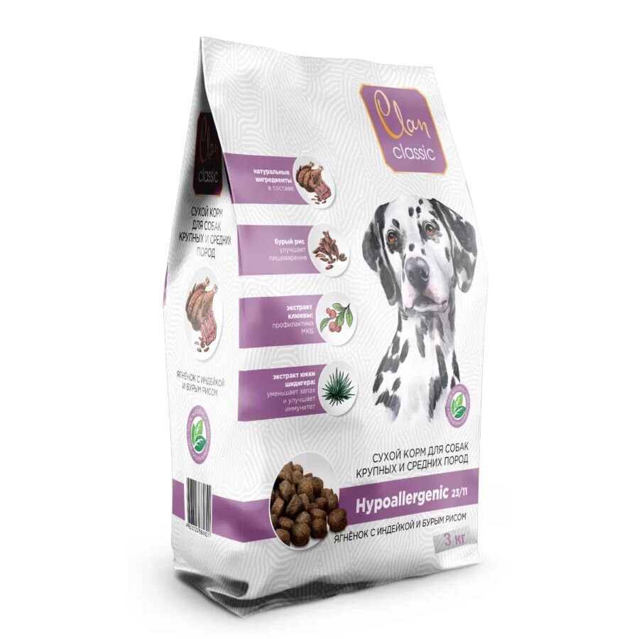 CLAN CLASSIC Hypoallergenic-23/11 корм сухой для собак крупных и средних пород Ягненок Индейка и бурый рис 3кг информация: