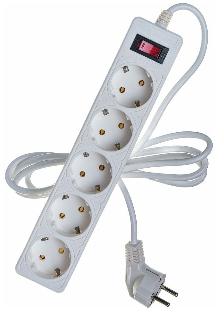 Сетевой фильтр Космос Электро Космос 5х1.8м с заземл. 10А IP20 2.2кВт 3х0.75 индик. сети, белый, FKsm1.8m-5g(W)