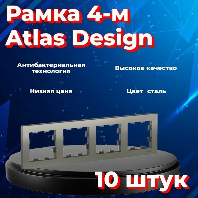 Рамка четырехместная для розеток и выключателей Schneider Electric (Systeme Electric) Atlas Design сталь ATN000904 - 10 шт. информация: