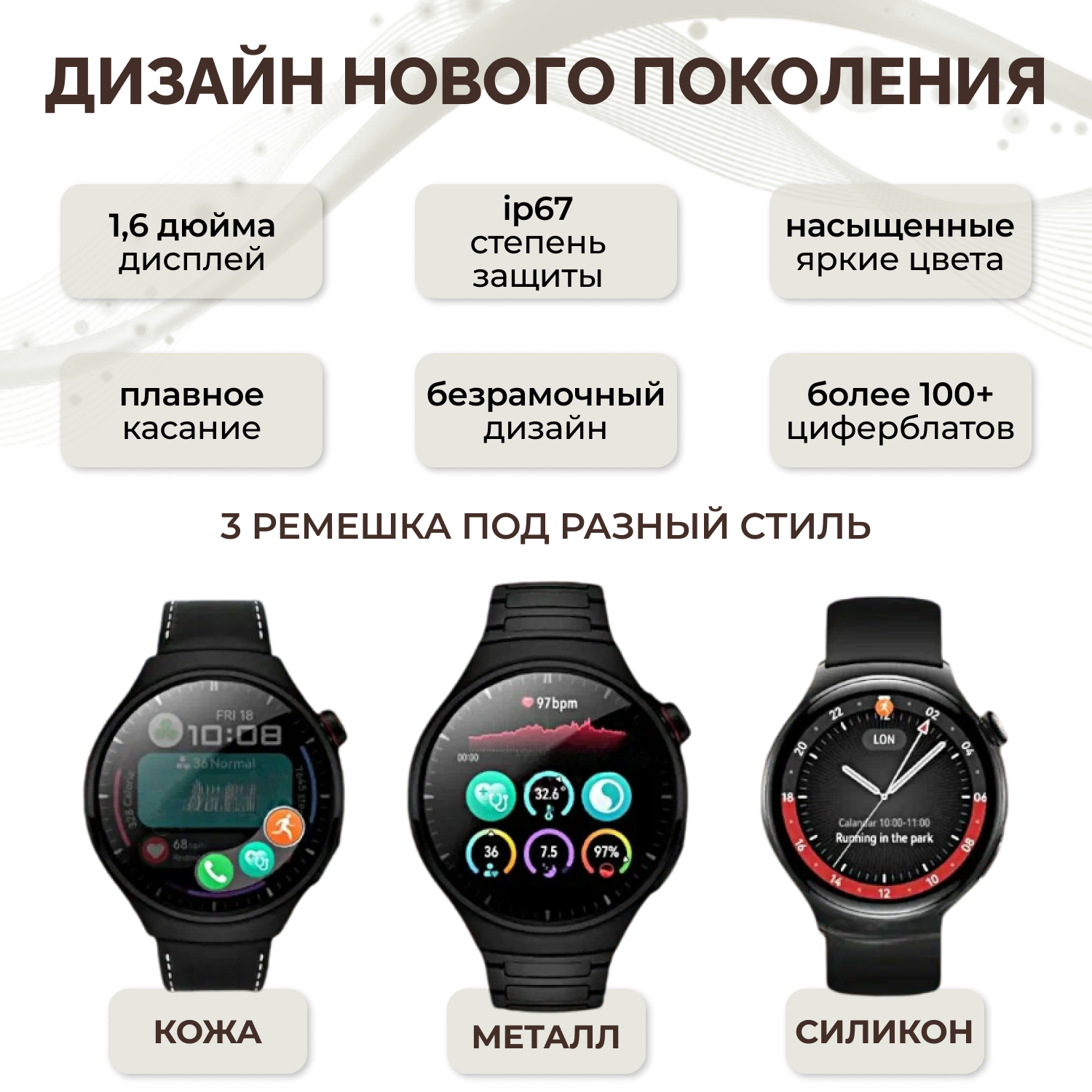 Отзывы на Смарт часы X6 MAX Series Smart Watch 46mm, круглые с тремя ремешками, Чёрные