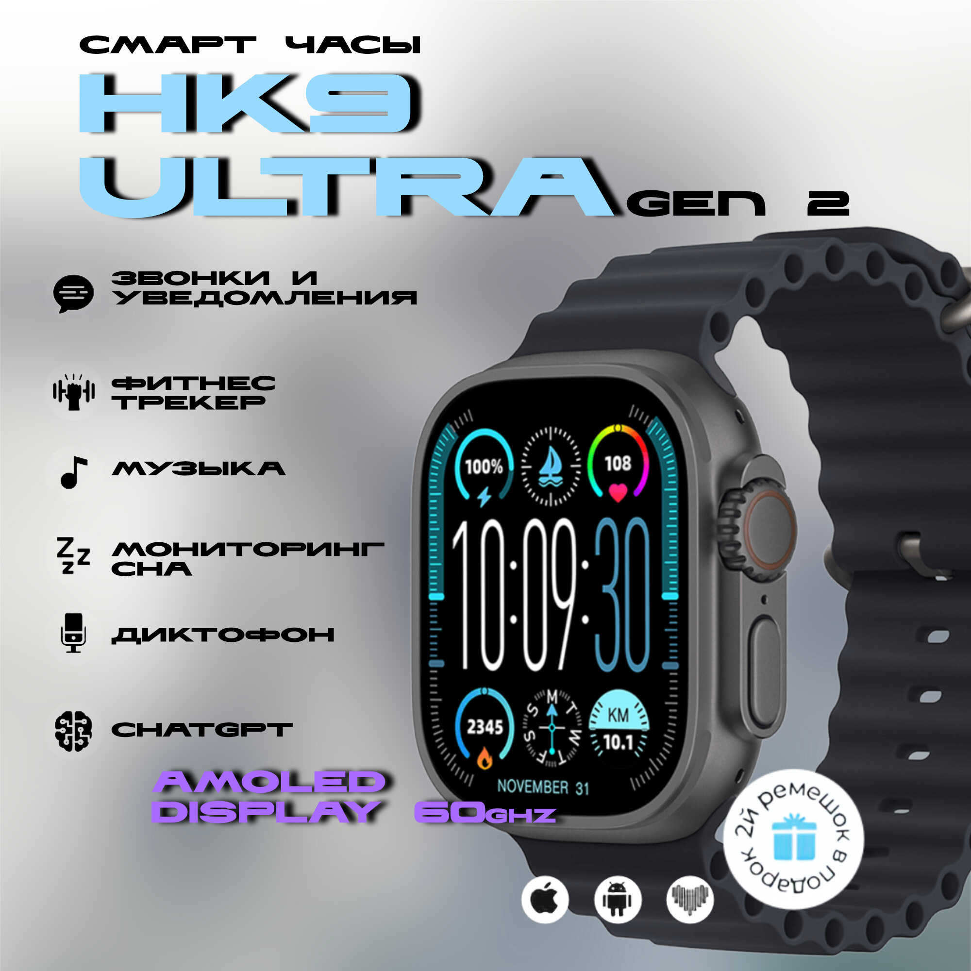 Умные смарт часы Smart Watch HK9 ULTRA2 с Amoled экраном 49mm информация:
