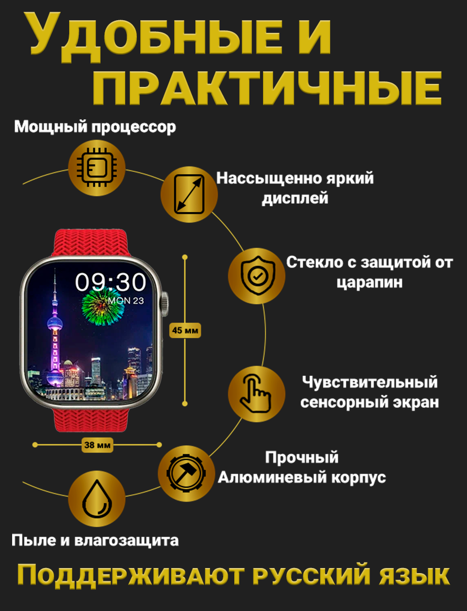 Отзывы на Смарт часы HK9 PRO + Умные часы PREMIUM Series Smart Watch AMOLED, iOS, Android, СhatGPT, Bluetooth Звонки, 2 ремешка, Красный