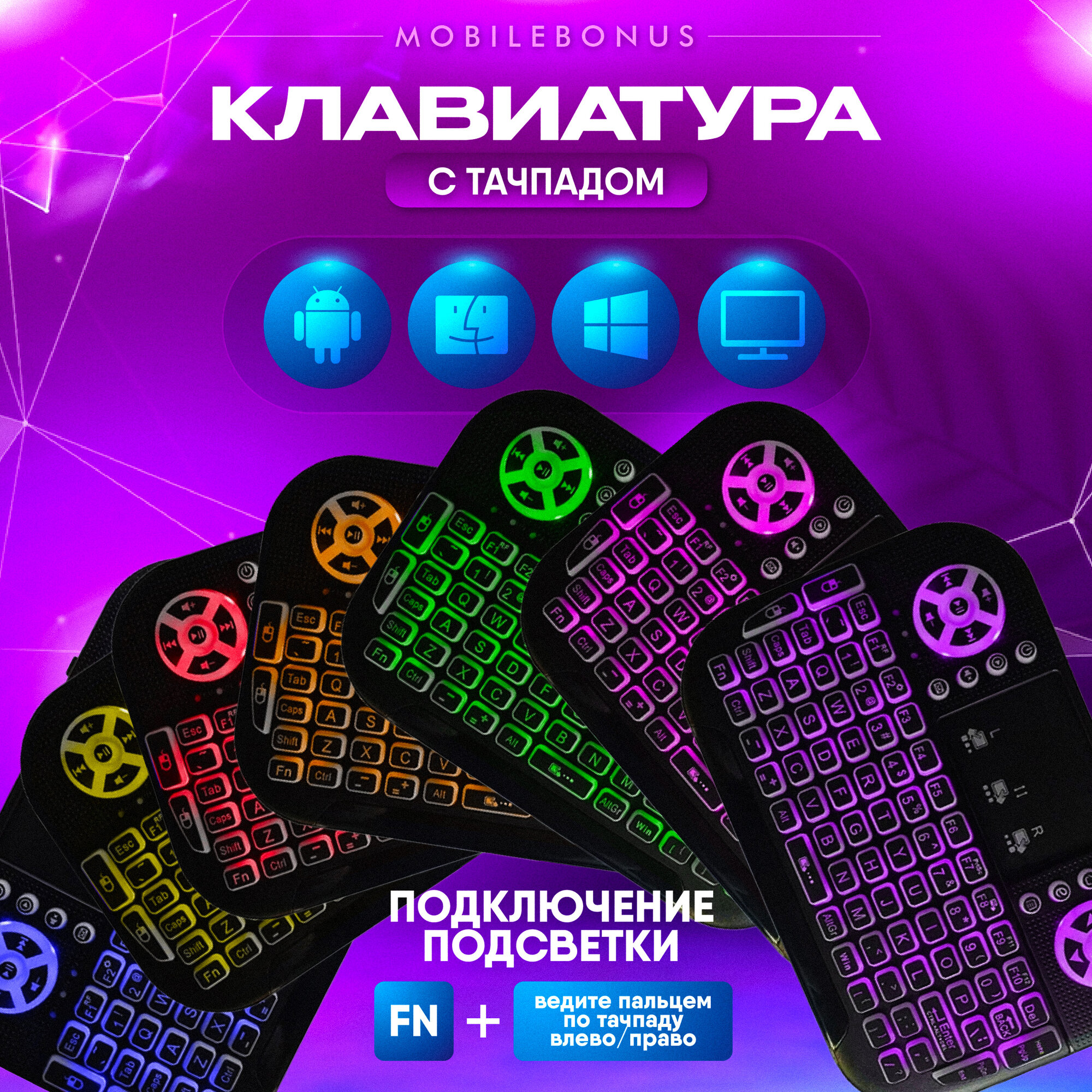 Клавиатура с подсветкой Bluetooth Air Mouse для Smart TV информация: