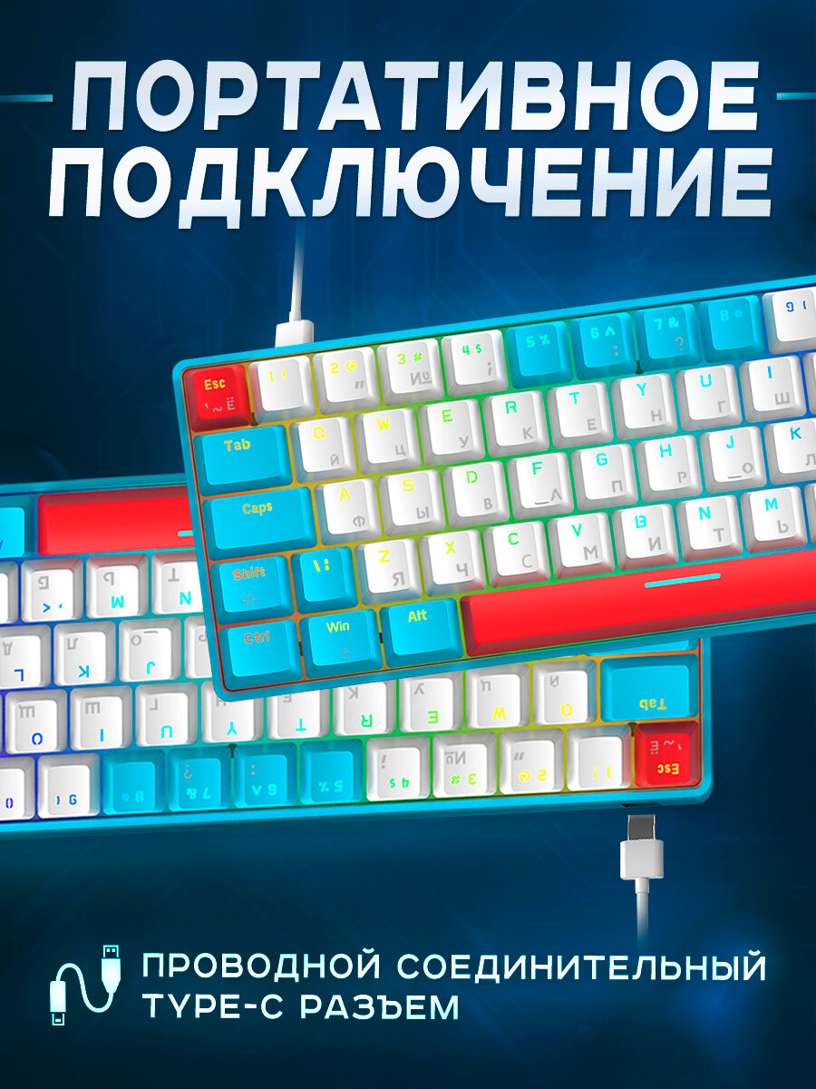 Игровая механическая клавиатура 60%, проводная, LED подсветка радужная, рус/англ раскладка информация: