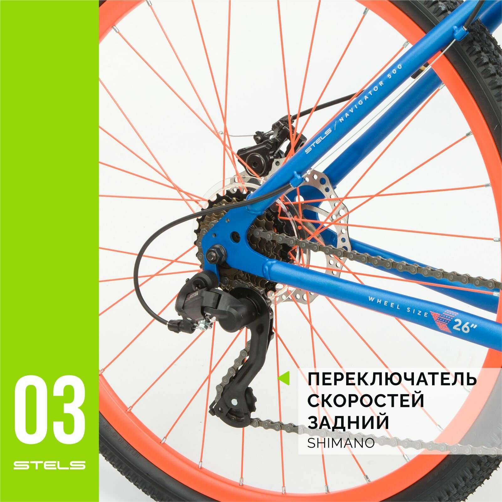 STELS Велосипед 26 горный STELS Navigator 500 MD (2021) количество скоростей 21 рама сталь 20 синий/красный 1шт