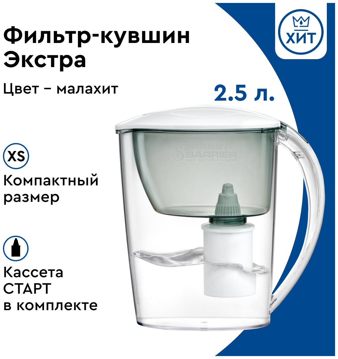 БАРЬЕР Экстра малахит XS, фильтр-кувшин для очистки воды, 2,5 л, без индикатора