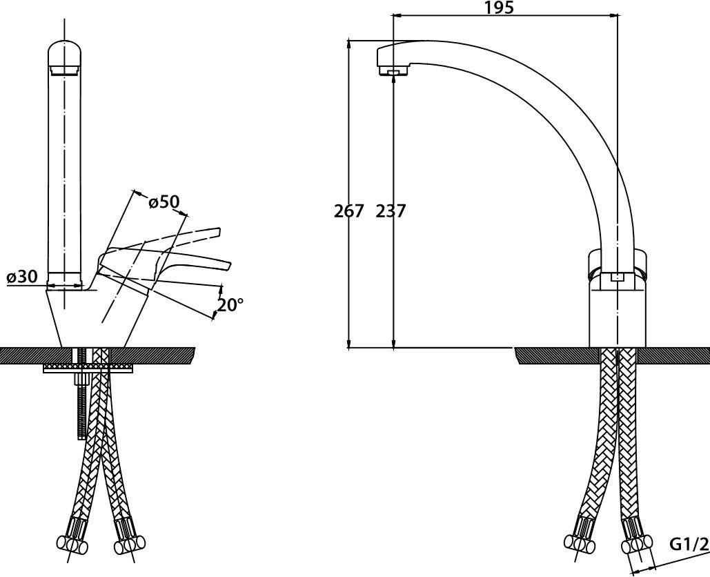 Смеситель Kaiser County 55244-1, кухня, ф40, боковой, Sandbeige