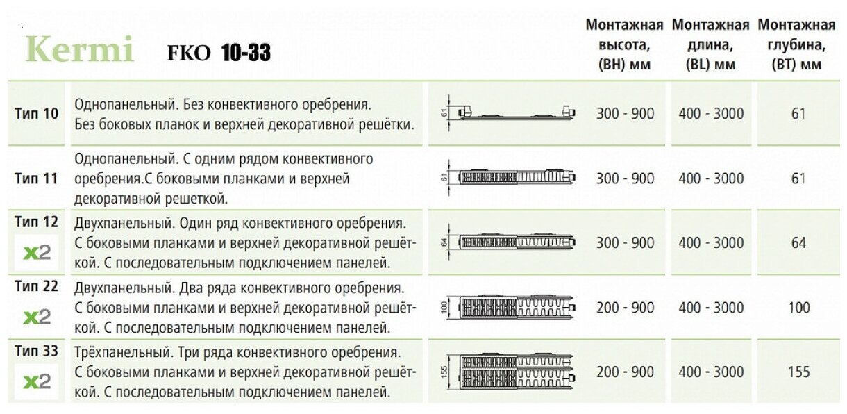 Радиатор Kermi FKO 11 500 700, панельный информация: