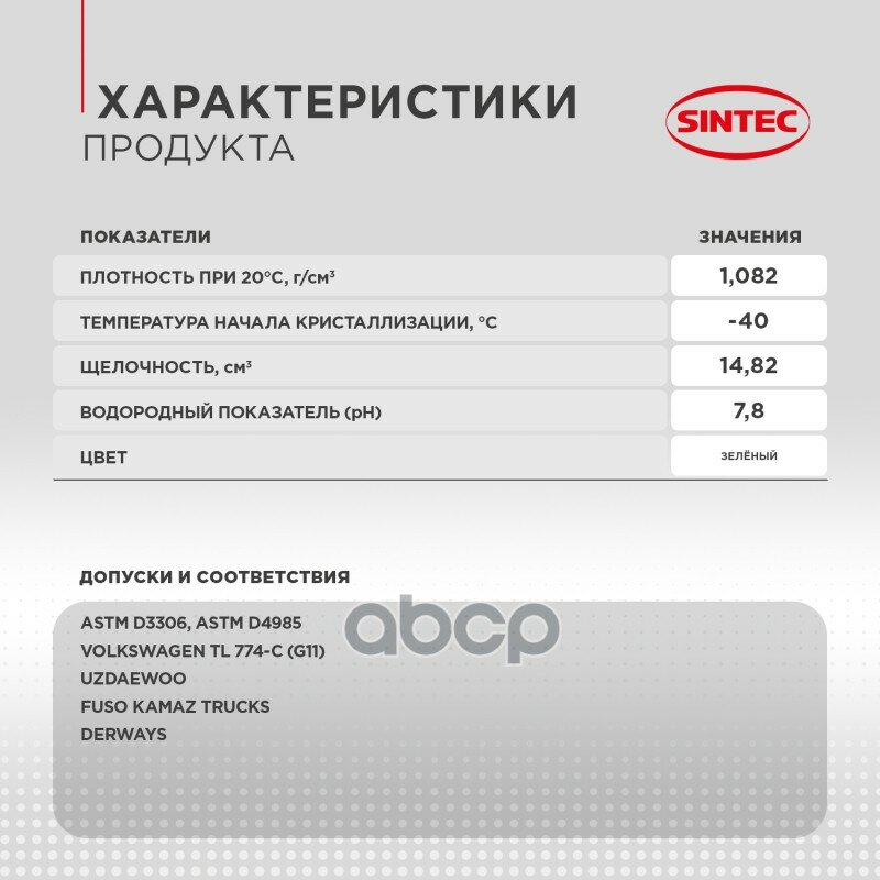 Антифриз Sintec Euro S11 G11 Готовый -40c Зеленый 10 Кг 800516 SINTEC арт. 800516 2 185 ₽