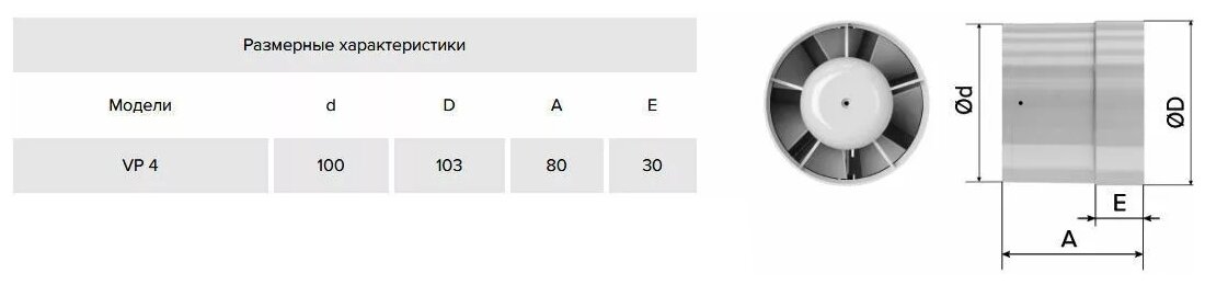 VP 4, Вентилятор осевой канальный вытяжной D 100