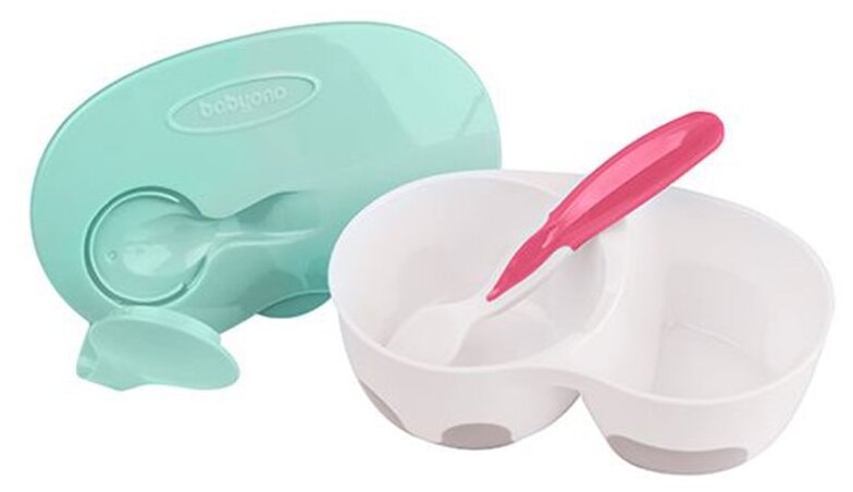 10 цен на Тарелочка с отделениями и ложечкой Зеленый/Розовый