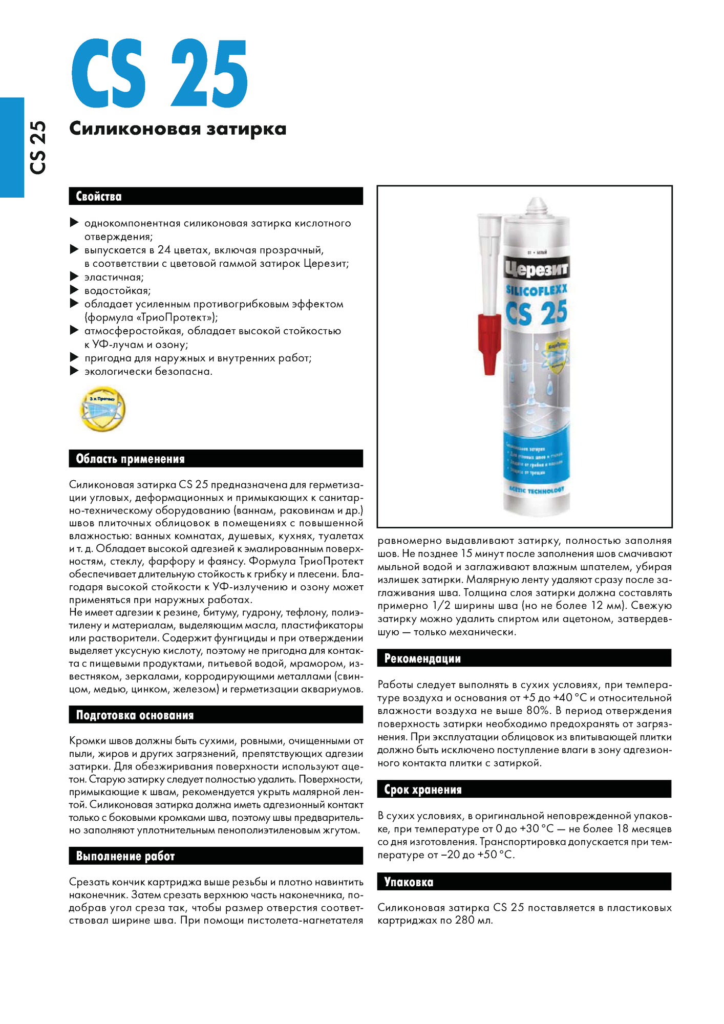 Затирка-герметик Церезит CS 25 силиконовая, 0.28 л, прозрачный информация: