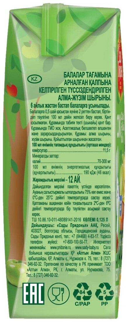 Сок Сады Придонья Зеленое яблоко (Tetra Pak), c 4 месяцев