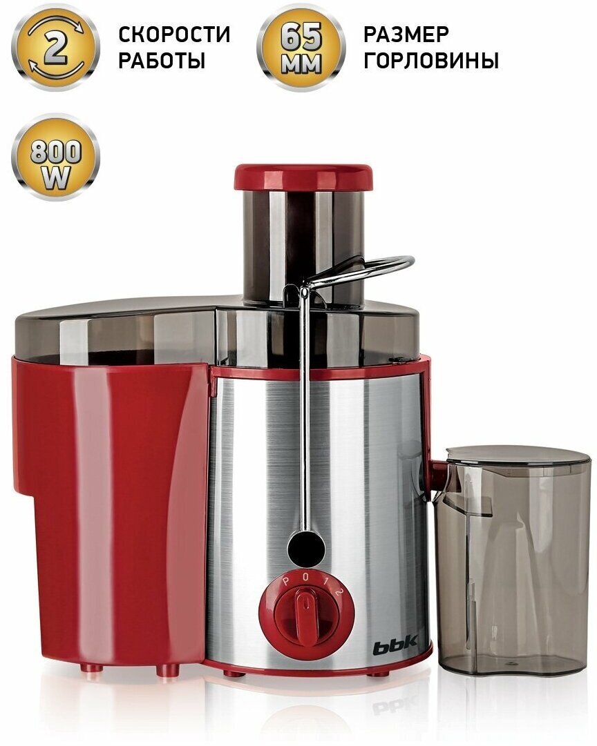 Центробежная соковыжималка BBK JC080-H06 вишня/металлик, мощность 800 Вт